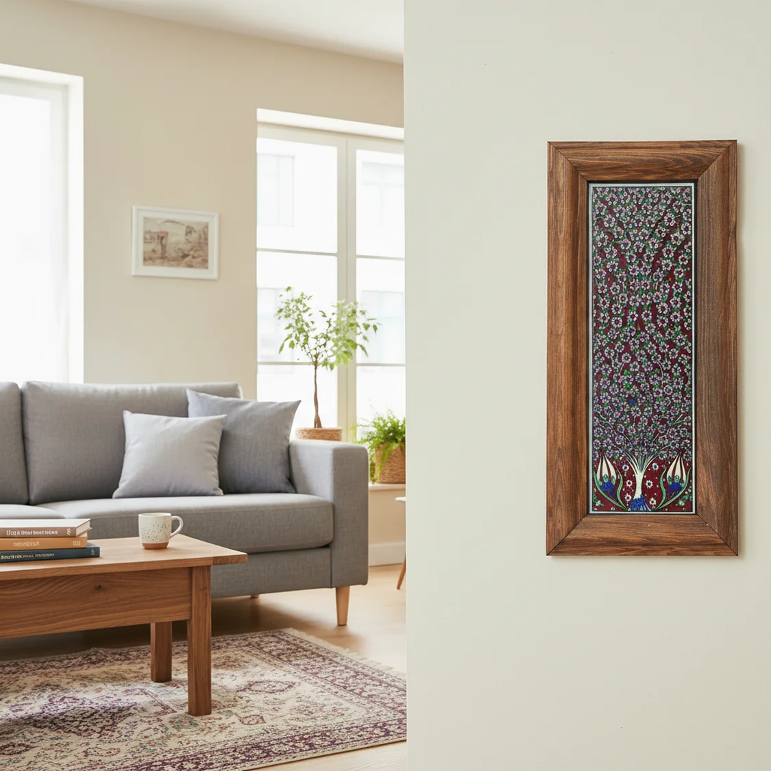El İşçiliği ve Kabartma: Karo üzerine özel tekniklerle işlenen kabartmalar, tabloya üç boyutlu bir derinlik kazandırır. Dokunduğunuzda sanatı hissetmenizi sağlar.