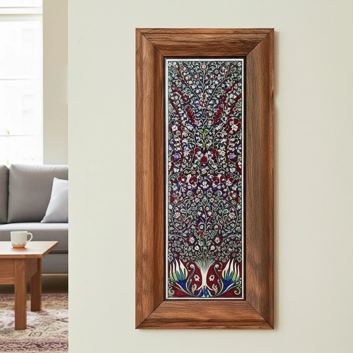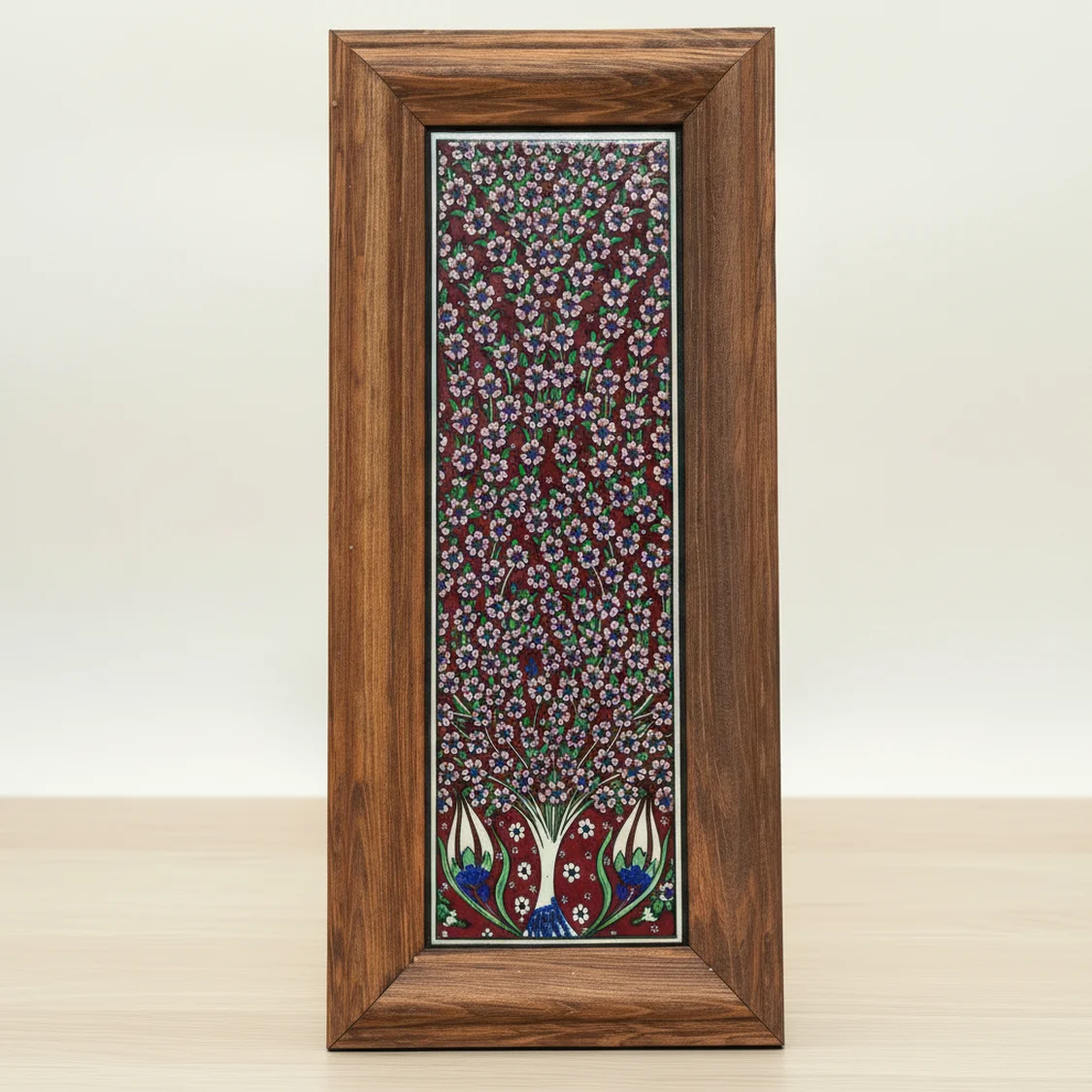 Selçuklu Seramik Karo İşlemeli El Yapımı Ahşap Ayna – 65×45 cm