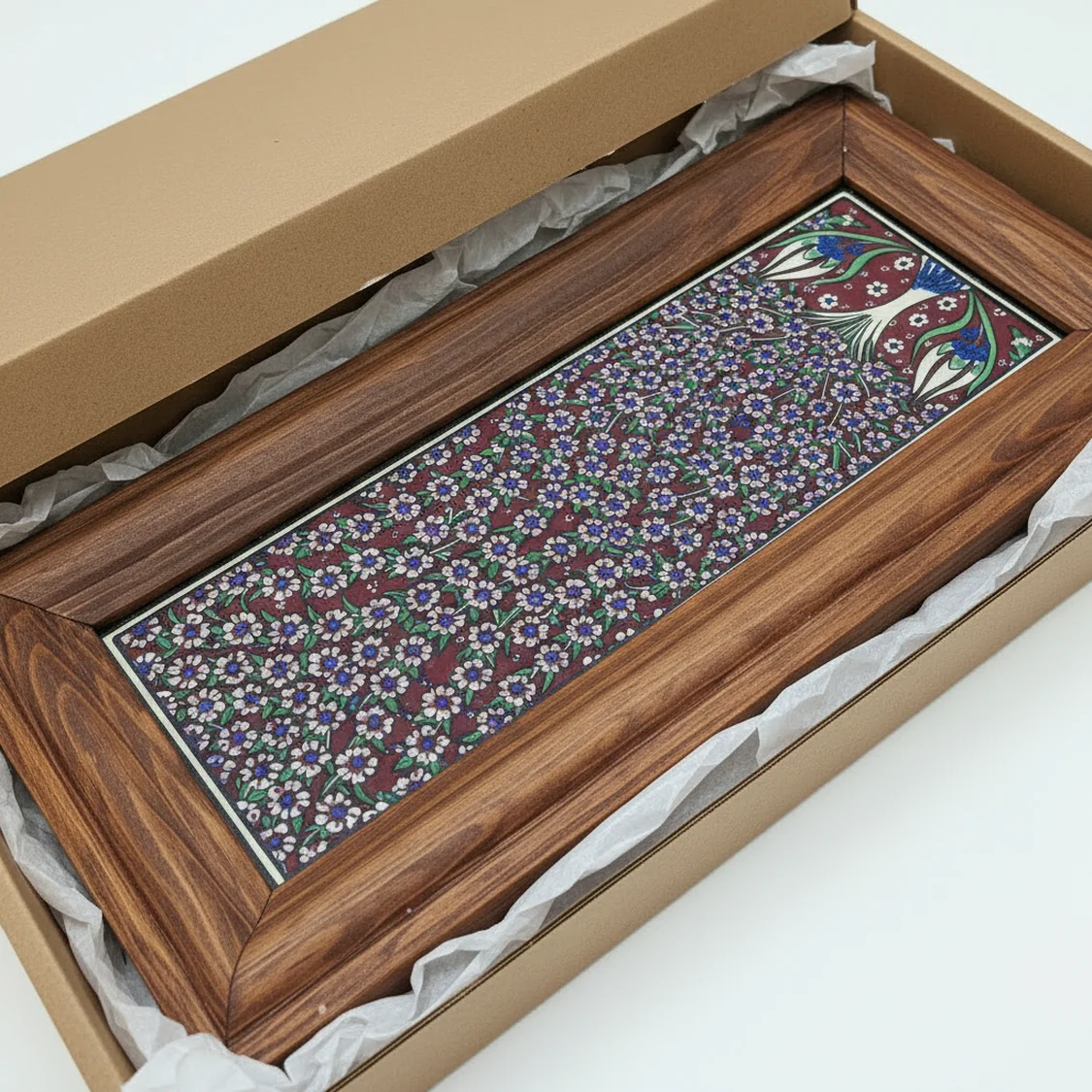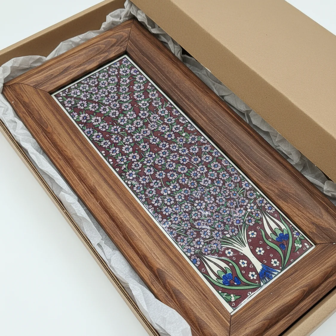 Busanat Özel Tasarım Seramik Karo Baskılı Ahşap Çerçeveli Sunum Tepsisi – 47×27 cm