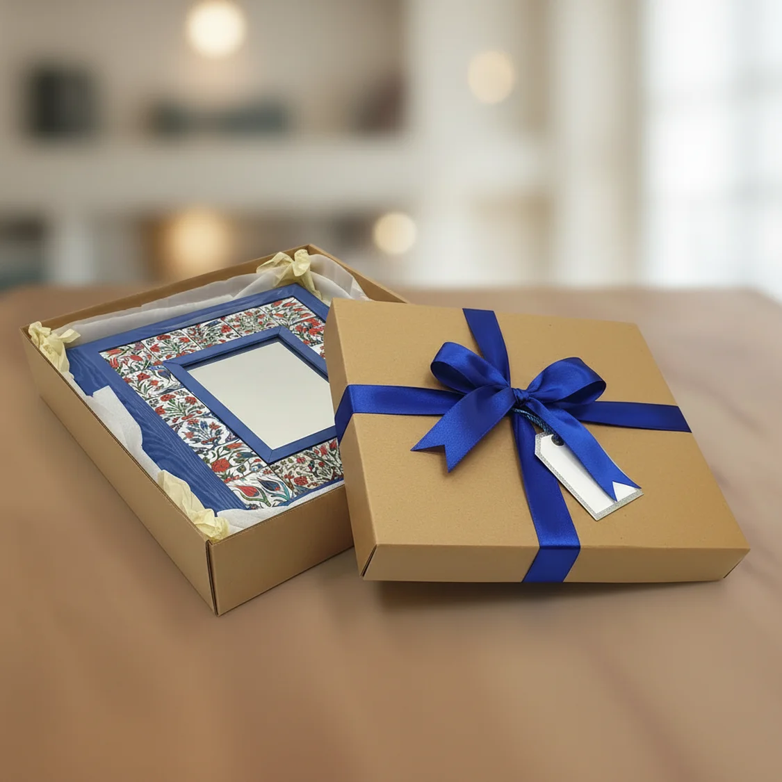 Doğal ahşabın sıcaklığını el işçiliği seramik karoların zarafetiyle buluşturan Busanat özel tasarım ayna, evinize sanatsal bir dokunuş katar. Hem modern hem de otantik dekorasyonlar için ideal, tamamen el yapımı özel bir parça.