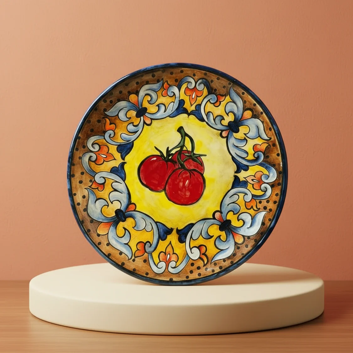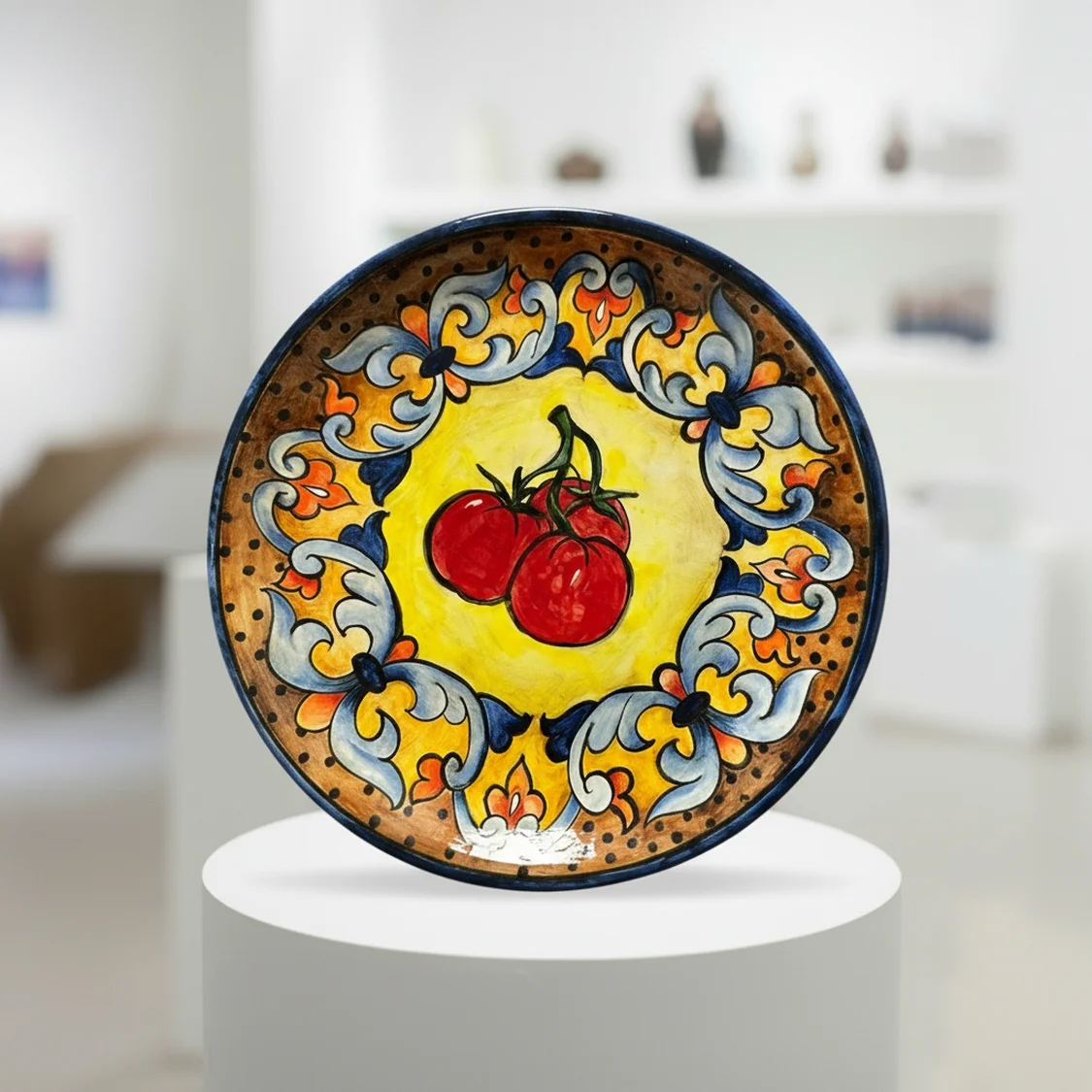 El Yapımı Özel Tasarım Seramik Tabak – Domates Desenli Sanatsal Tabaktır