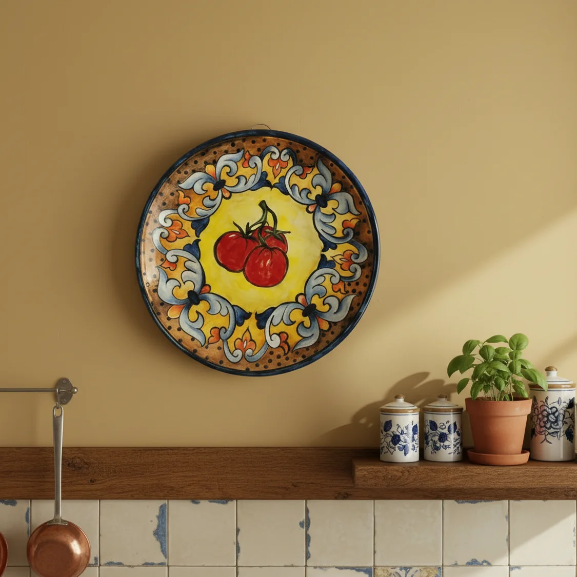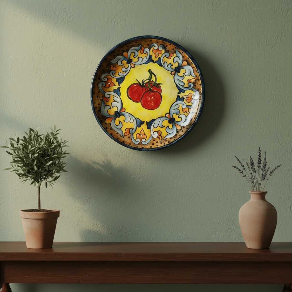 Busanat’ın el işçiliği ile üretilen, merkezinde canlı bir domates figürü barındıran bu özel tasarım seramik tabağı, ev dekorasyonunuza sanatsal bir dokunuş katıyor.