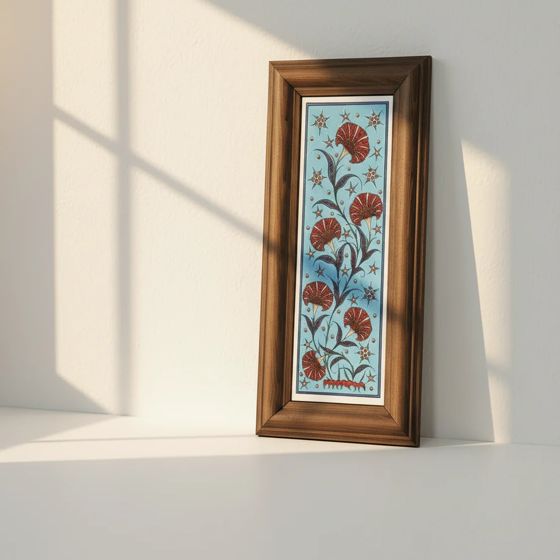 Sanatın ve zanaatın buluştuğu bu özel seramik tablo, Busanat’ın usta ellerinde şekillenen bir başyapıttır. Yüksek kaliteli seramik karo yüzeyine, geleneksel kabartma yöntemiyle tek tek işlenen motifler, dokunsal bir derinlik ve görsel bir şölen sunar.