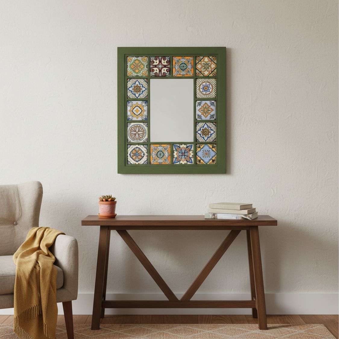 Evinize otantik bir dokunuş katın! Doğal ahşap dokusu ile modern karo baskı desenlerini bir araya getiren bu özel tasarım ayna, hem klasik hem de modern dekorasyon tarzlarına mükemmel uyum sağlar.