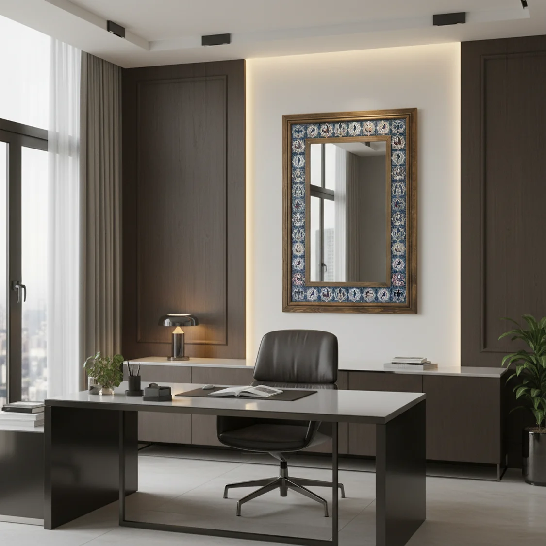 Otandik Selçuklu Motifleri: Aynanın iç kısmında yer alan seramik karolar, Selçuklu döneminin karakteristik geometrik ve bitkisel desenlerini yansıtır. Her bir karo, dönemin estetik anlayışını yansıtan özel renk paletleriyle işlenmiştir.